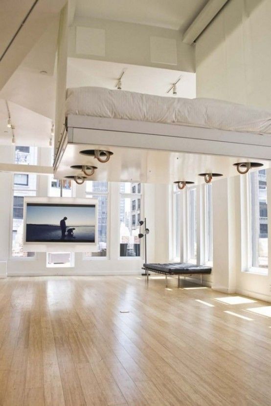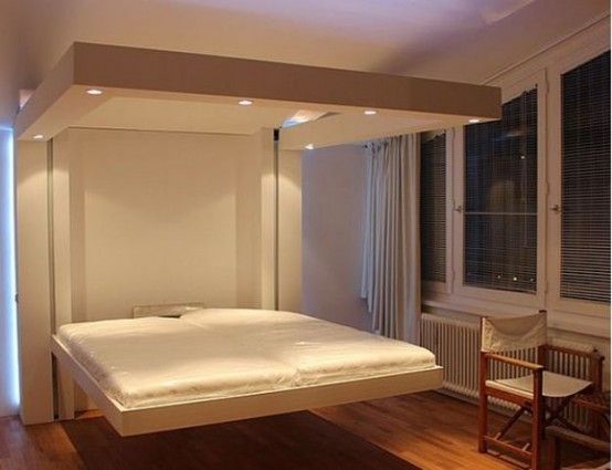 Patul care se ridica si ulterior se retracteaza in interiorul mobilei este o idee folositoare. Pentru a pune in practica aceasta idee aveti nevoie de sprijinul unui tamplar care sa va creeze dupa masuratori precise mobila si patul.