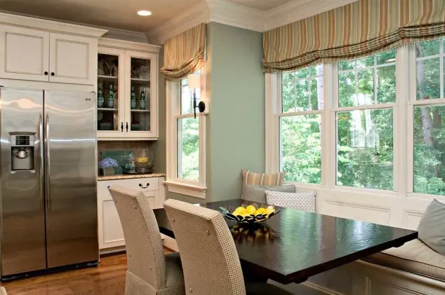 Rafinamentul dat de aceasta alternativa pentru un design mai excentric, vine cu marele avantaj ca poti alege materiale foarte usor de curatat si de intretinut pentru perdelele si cortinele din bucatarie.