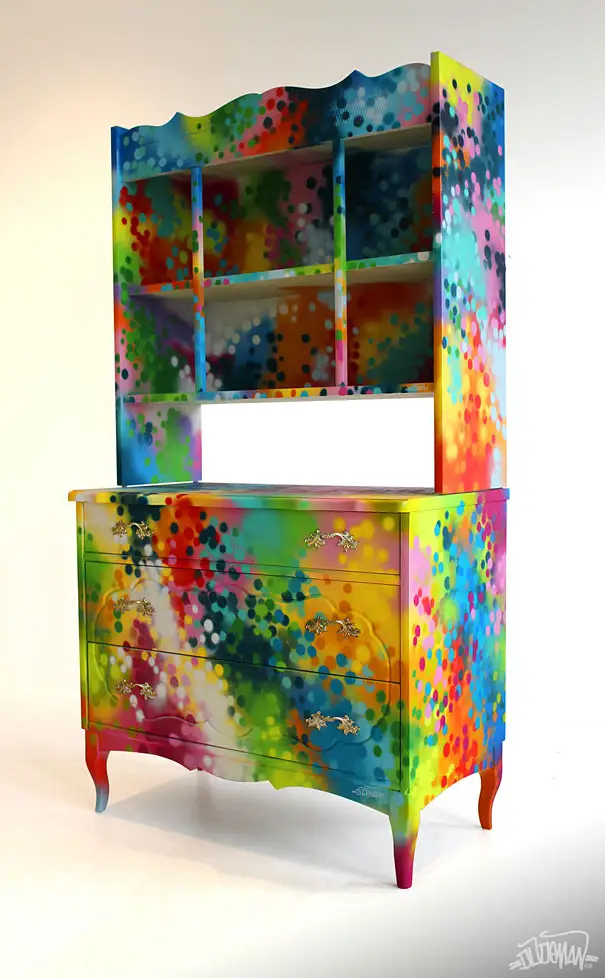 Un artist din Toronto s-a gandit sa aduca ultimul trend in materie de arta, si anume arta stradala, chiar pe obiecte de mobilier.