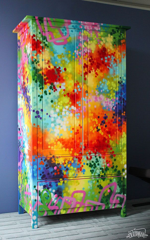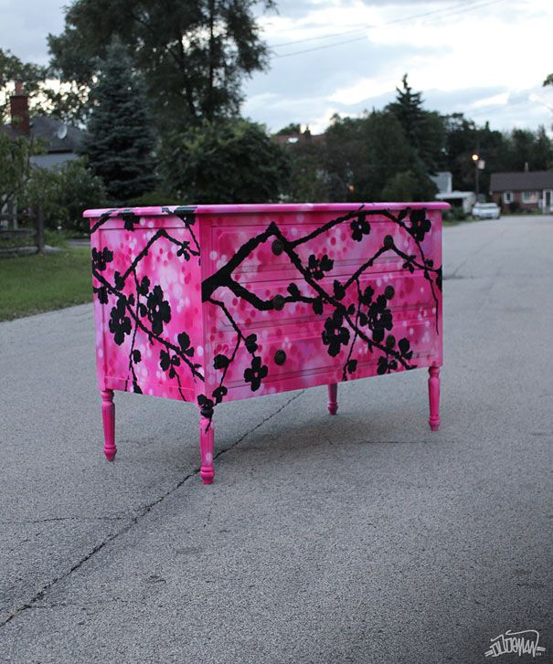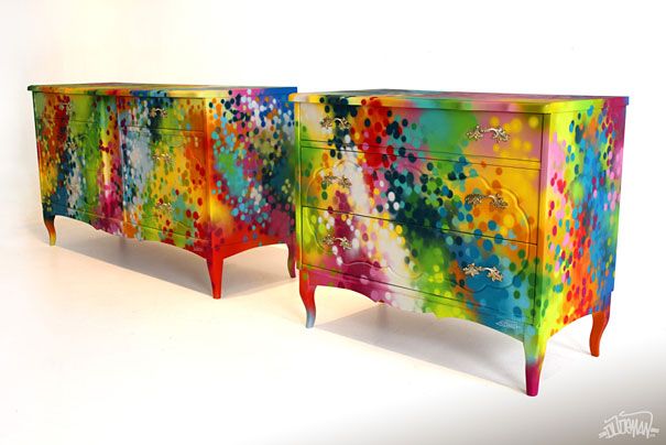 Un artist din Toronto s-a gandit sa aduca ultimul trend in materie de arta, si anume arta stradala, chiar pe obiecte de mobilier.