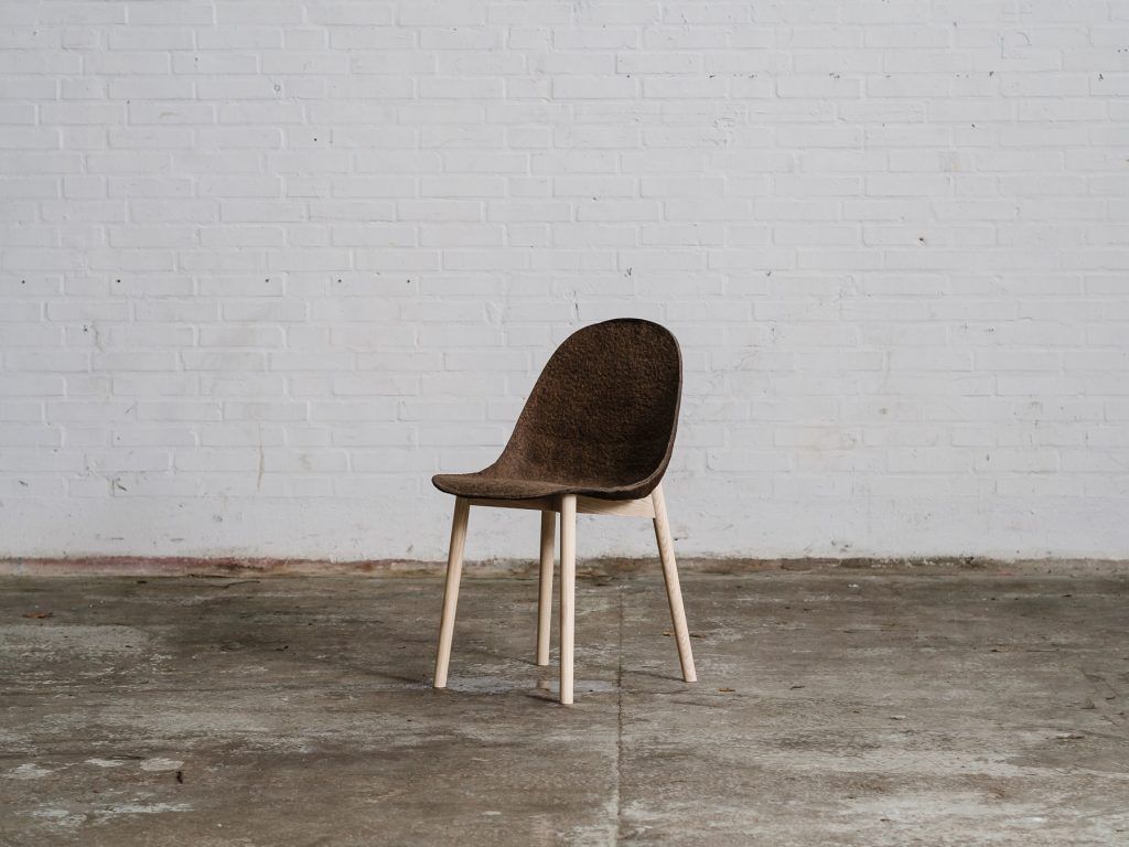 Scaun din alge. Forma finala imperfecta reflecta executia manuala a produsului