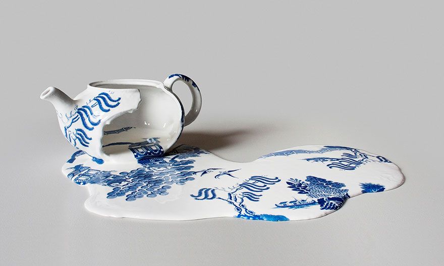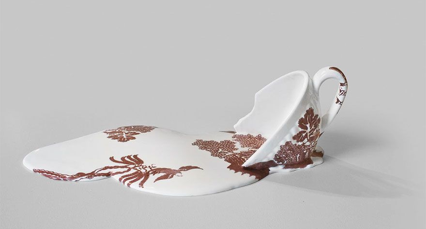 Intr-o maniera jucausa ale ceasurilor care se topesc ale lui Salvador Dali, artista Livia Marin, de origine chiliana si in prezent stabilita la Londra, a creat niste piese interesante din portelan care dau impresia ca se scurg si se topesc.