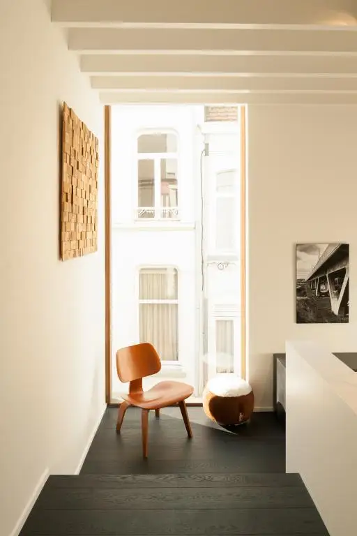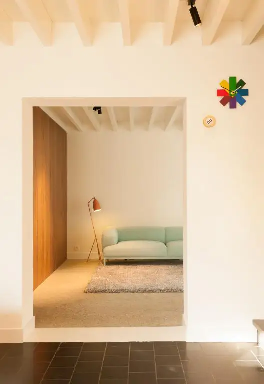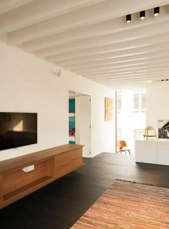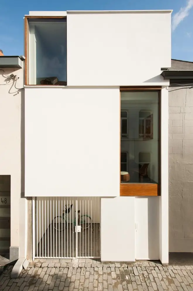 Desi nu au avut la dispozitie prea mult spatiu cu care sa lucreze arhitectii au reusit sa puna in valoare fiecare metru patrat. Restul casei arata si el foarte bine, sunt imbinate culori cu nuante placute si vibrante, iar peste tot predomina lumina naturala. Podelele din lemn (si gresie, pe alocuri) de culoare inchisa contrasteaza cu pereti alibi si dau senzatia de spatialitate.