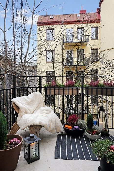 Iarna putem aseza pe balcon in vase decorative, arbusti si arbori pitici vesnic verzi. Acestia dau viata si culoare. Putem sa utilizam plante foioase cu frunze persistente si plante cu frunze aciculare, care arata bine in diferite combinatii dar si asezate unele langa altele.