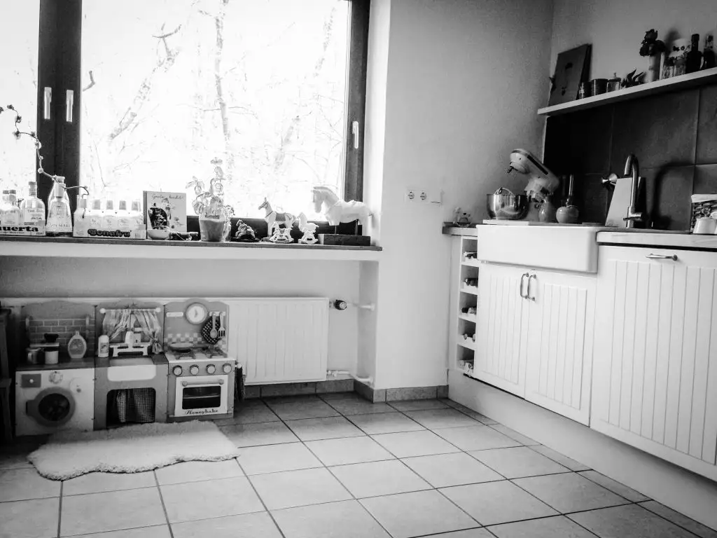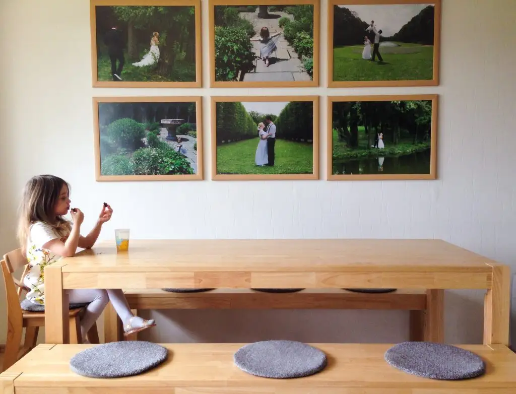 Masa unde mancam e singura piesa de mobilier goala. O pastram asa pentru ca avem mereu nevoie de un spatiu unde copilul isi poate desfasura activitatile de colorat, lipit, construit si evident, unde putem sa mancam.