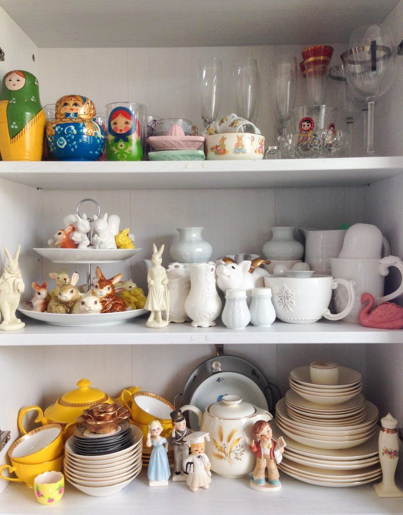 In ceea ce priveste colectiile, variaza de la jucarii de vinil, jucarii vechi, carti pentru copii in toate limbile, memorabilia de la concerte, balansoare vintage de copii, benzi desenate, portelan si bibelouri vechi, carti de arta lowbrow si quilturi.