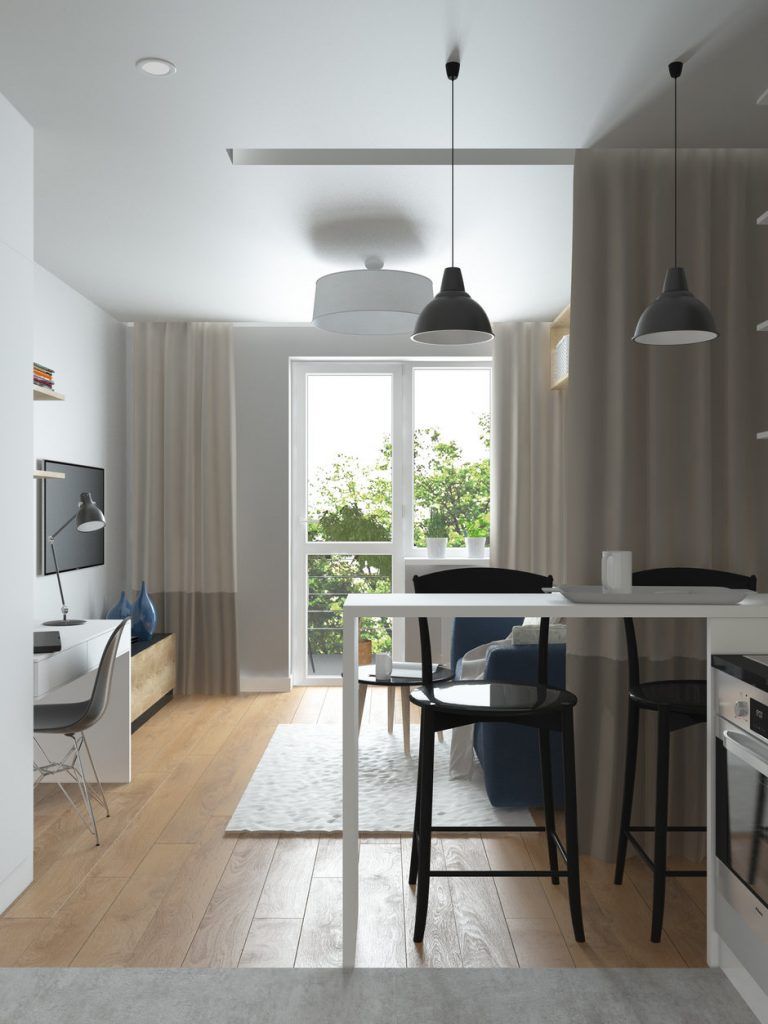 Deschide GaleriaIntr-un astfel de apartament mic poti intampina multe impedimente. Unul din ele este chiar peretele sau peretii despartitori. In cazul nostru, bucataria si camera principala au fost unite pentru a mari spatiul disponibil, creand circulatii firesti si o mai buna coerenta a amenajarii.