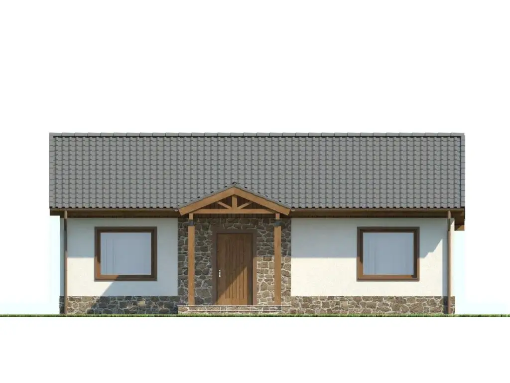 Avantajul unei astfel de case este simplitatea formei si prin combinarea diferitelor tipuri de materiale (lemn, piatra) se poate obtine un aspect armonios si estetic. Acest tip de proiect este potrivit pentru o casa de vacanta sau pentru o familie mica. Neavand etaj, costurile de constructie si ulterior intretinere sunt mai reduse.