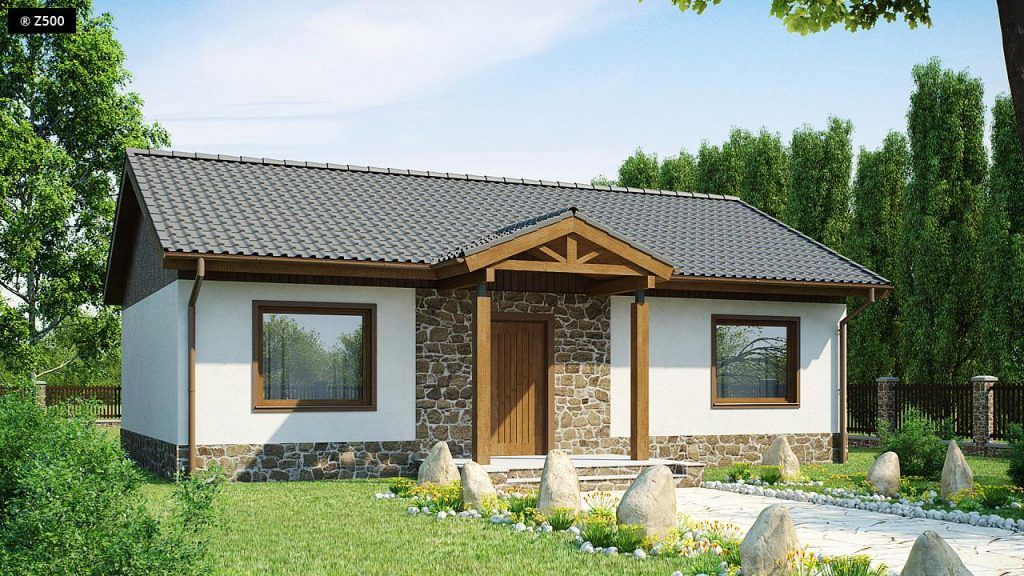 Avantajul unei astfel de case este simplitatea formei si prin combinarea diferitelor tipuri de materiale (lemn, piatra) se poate obtine un aspect armonios si estetic. Acest tip de proiect este potrivit pentru o casa de vacanta sau pentru o familie mica. Neavand etaj, costurile de constructie si ulterior intretinere sunt mai reduse.