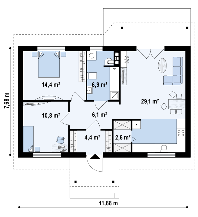 Te-ai gandit vreodata cum ai vrea sa arate casa ta ideala? Cu siguranta ti-ai imaginat-o in multe moduri, cu terasa, veranda, gradina, spatioasa la interior. Iti propun pentru azi un proiect de casa mica, cu un singur nivel, cu o suprafata utila de 74 metri patrati.