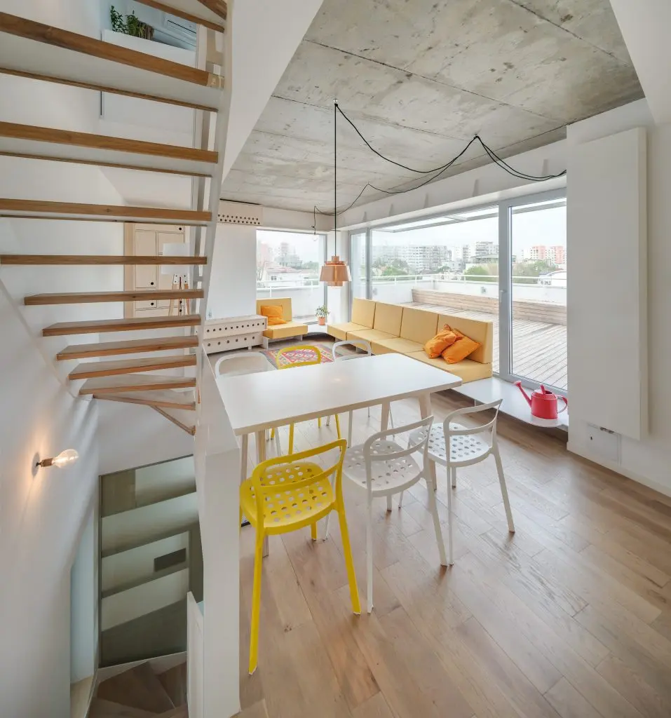 De asemenea, spatiile destinate apartamentelor pot fi locuite individual sau, pentru cei care isi doresc o suprafata mai mare pot fi achizitionate in pereche si conectate foarte usor intre ele atat pe orizontala cat si pe verticala. In exteriorul acestor apartamente, pe proprietari ii asteapta terase, holuri, un mic bar, spatii comerciale si o curte interioara.