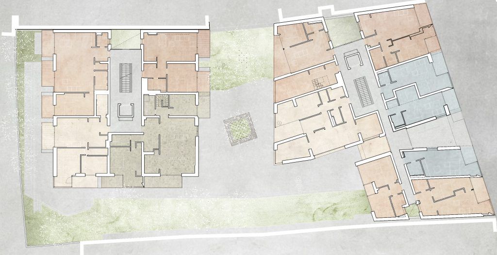 La interior, arhitectii s-au jucat cu volumele in asa fel incat spatiile de locuit, desi mici, sa fie suficiente pentru traiul normal al unei familii, iar spatiile comune au primit mai suprafete mai mari pentru a incuraja interactiunea. Un alt avantaj al acestui complex este acela ca niciun apartament nu seamna cu celalalt, facand din fiecare spatiu un loc unic pentru fiecare familie.