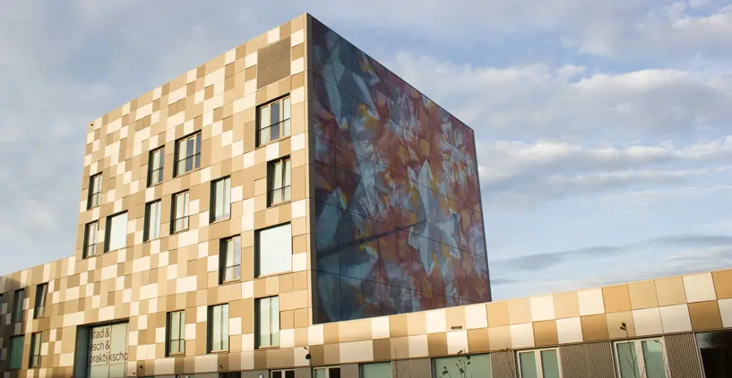 Formele de pe fatade nu sunt altceva decat o ilustrare a unor concepte care tin de materiile care se studiaza in acest centru educational. Cladirea ofera un spatiu unde creativitatea, imaginatia, diversitatea sunt la ele acasa, iar toate au puterea de a fuziona intre ele. Un loc un creativitatea si imaginatia joaca rolul principal.