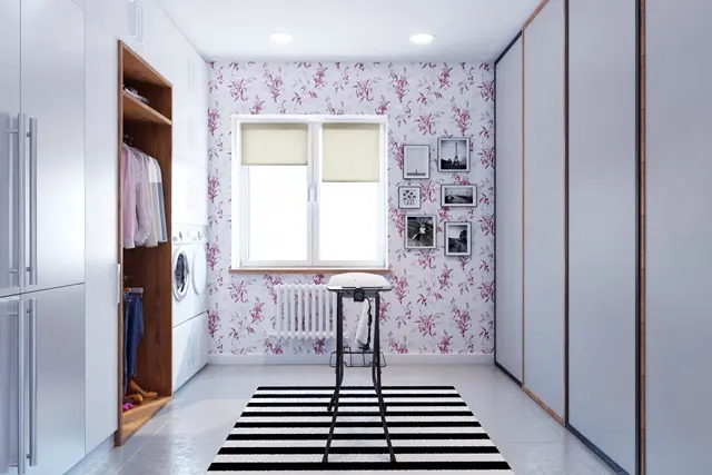 O camera utila, destinata spalarii rufelor si calcarii lor, cu numeroase spatii de depozitare