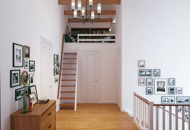 Scarile care duc la etaj un spatiu personalizat cu multe tablouri