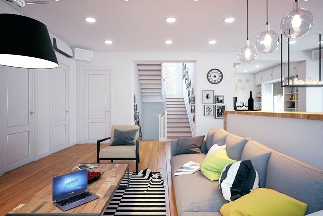 Living cu canapea coltar minimalist amenajat, intim si placut pentru serile petrecute in familie