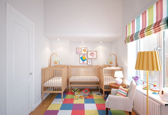 Camera actuala a celor trei bebelusi mult alb si accente de culori