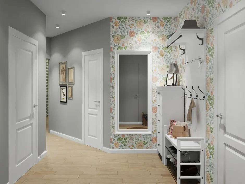 S-a pornit de la o baza neutra pentru a pastra spatiile cat mai luminoase, la care s-au adaugat tusele de culoare prin modele diferite de tapet ce formeaza zone-accent in camerele respective, chiar si in hol.