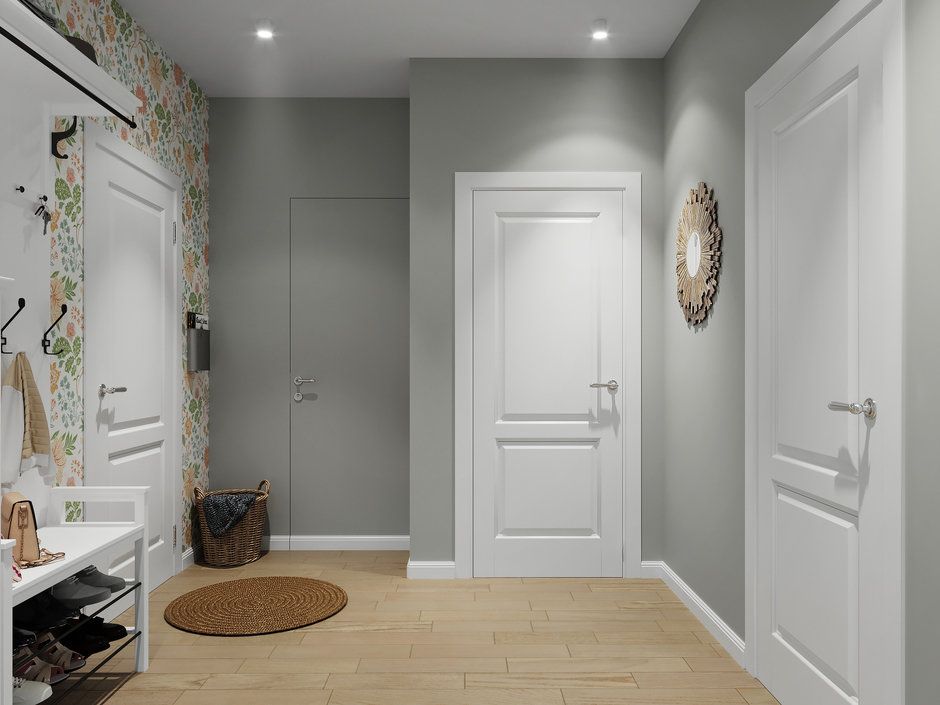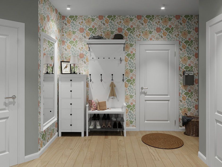 S-a pornit de la o baza neutra pentru a pastra spatiile cat mai luminoase, la care s-au adaugat tusele de culoare prin modele diferite de tapet ce formeaza zone-accent in camerele respective, chiar si in hol.