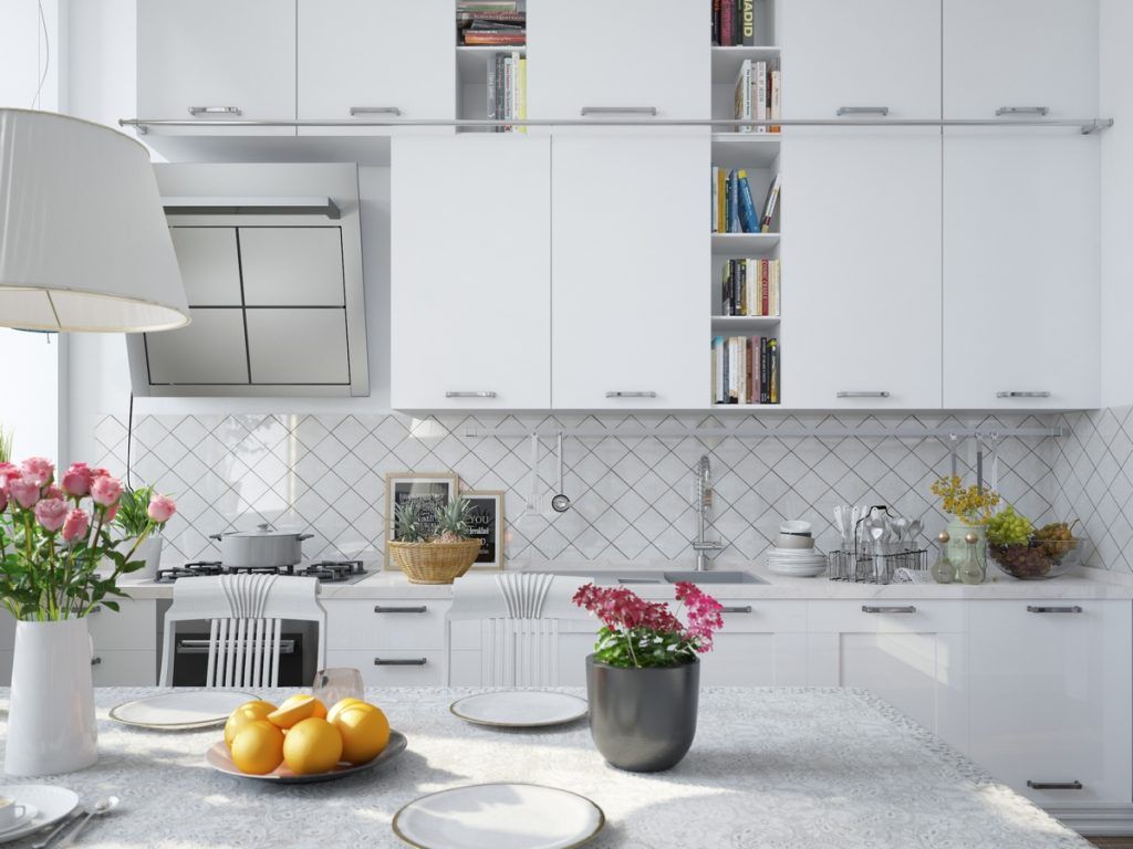 O astfel de abordare permite o depozitare variata, incluzand o mini-biblioteca, mai multe electrocasnice incorporate in mobilier sau chiar un spatiu de birou. Pentru a pastra totul cat mai luminos si aerisit, s-a optat pentru fronturi albe, cu un design modern, minimal. Stilistic, bucataria mizeaza pe o abordare scandinava, bazata pe functionalitate si cu o estetica redusa la esential. Locul de luat masa din mijlocul bucatariei merge inspre o zona de orientare clasica, fara a intra in dezacord cu stilul mai auster al nordicilor.