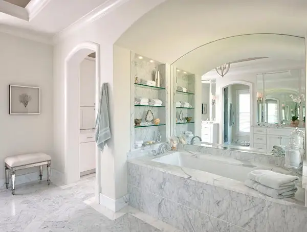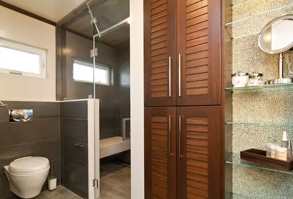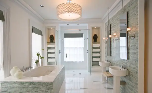 In baie, sticla este in elementul ei. Rafturile ofera un aspect proaspat, curat, stralucitor, mai ales cand lumina sa reflecta in ele. Baile mici profita din plin de efectele sticlei, oferindu-le un efect de marire a spatiului prin claritate si transparenta.
