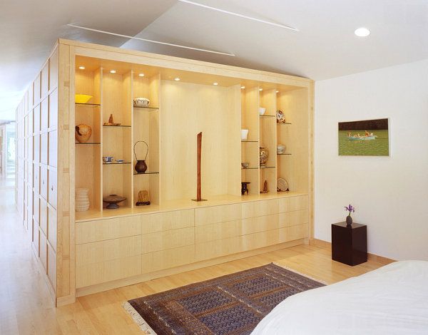 Fiind un material atat de versatil, sticla poate fi integrata chiar si in dormitor, oferind un accent elegant. Rafturile din sticla se pot folosi si pentru dressinguri. Aici sticla sablata va conferi o nota translucida dar stilata.