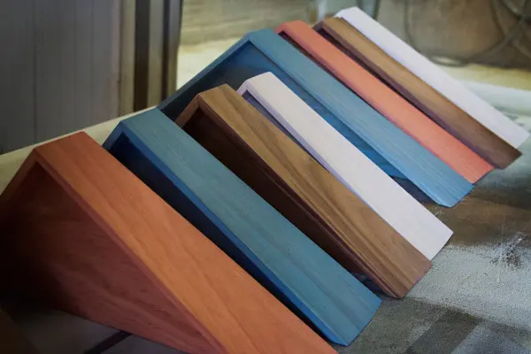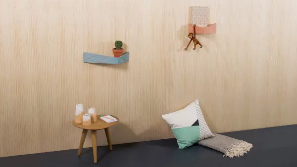 Realizate manual, rafturile Pelican contin o structura de lemn usor ascutita; se fixeaza in perete prin doua carlige discrete. Pot fi gasite sub doua marimi, avand cate patru finisaje pentru a se putea integra in diferite tipuri de amenajari.