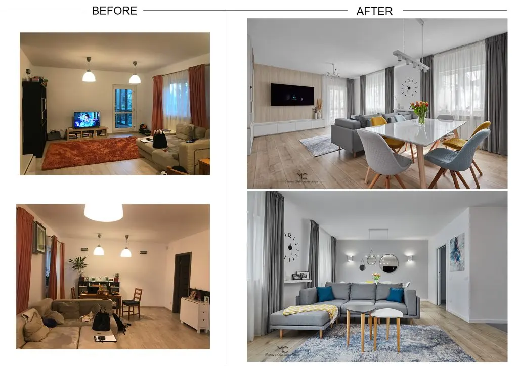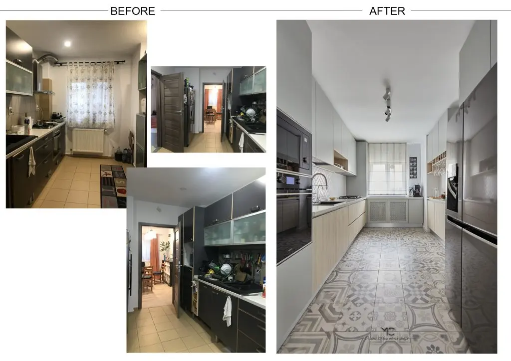 La momentul inceperii proiectului de reamenajare, locuinta era nerenovata, cu finisaje vechi, dupa ce fusese preluata de la dezvoltator in anul 2006, nu a mai fost renovata, fapt ce se resimtea pe alocuri.