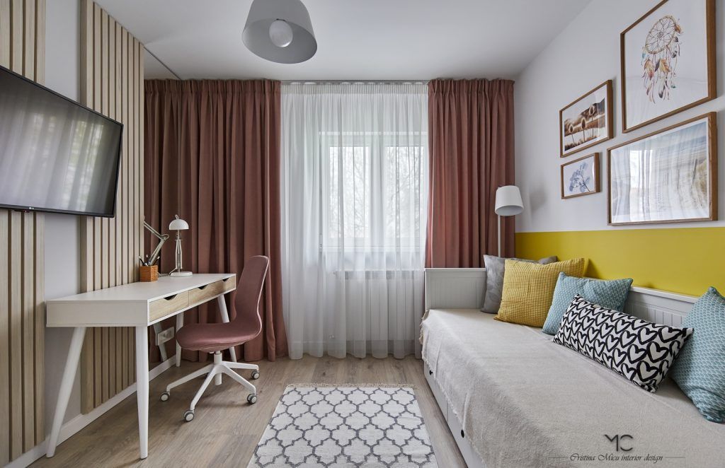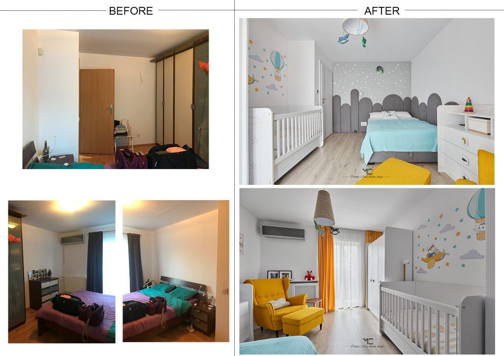 Clientii si-au dorit o reorganizare a spatiilor si a functiunii camerelor pentru a profita la maxim de spatiul disponibil si a asigura confortul mult visat. Vechiul dormitor matrimonial a devenit dormitorul de copil iar vechiul dormitor de oaspeti este acum dormitorul matrimonial.