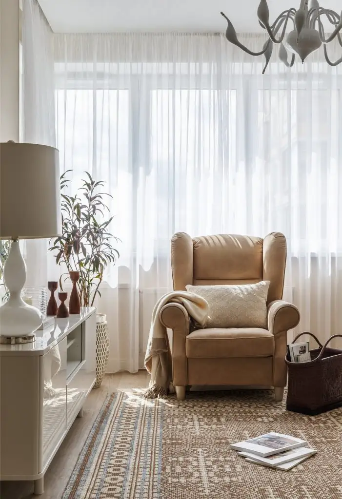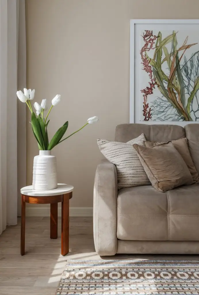 Pe fundal predomina bejul la care se adauga mici contraste de maro-brun, tuse de verde sau turcoaz-bleu, esente naturale de lemn care imprima caldura spatiului. De remarcat texturile si textilele deopotriva care imbraca decorul.