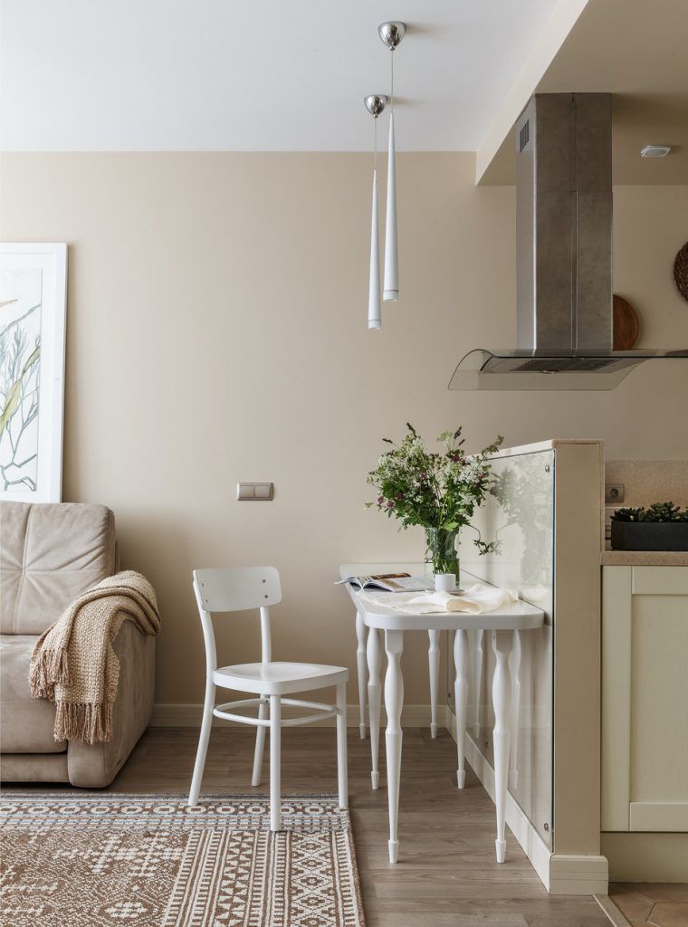 In urma acestor configurari, spatiul pare mai fluent, in ciuda reducerii suprafetei aferente fiecarei functiuni in parte. De aceea, designerul a mizat pe o nuanta neutra cu care a zugravit toti peretii, creand astfel o senzatie unitara la nivelul amenajarii.