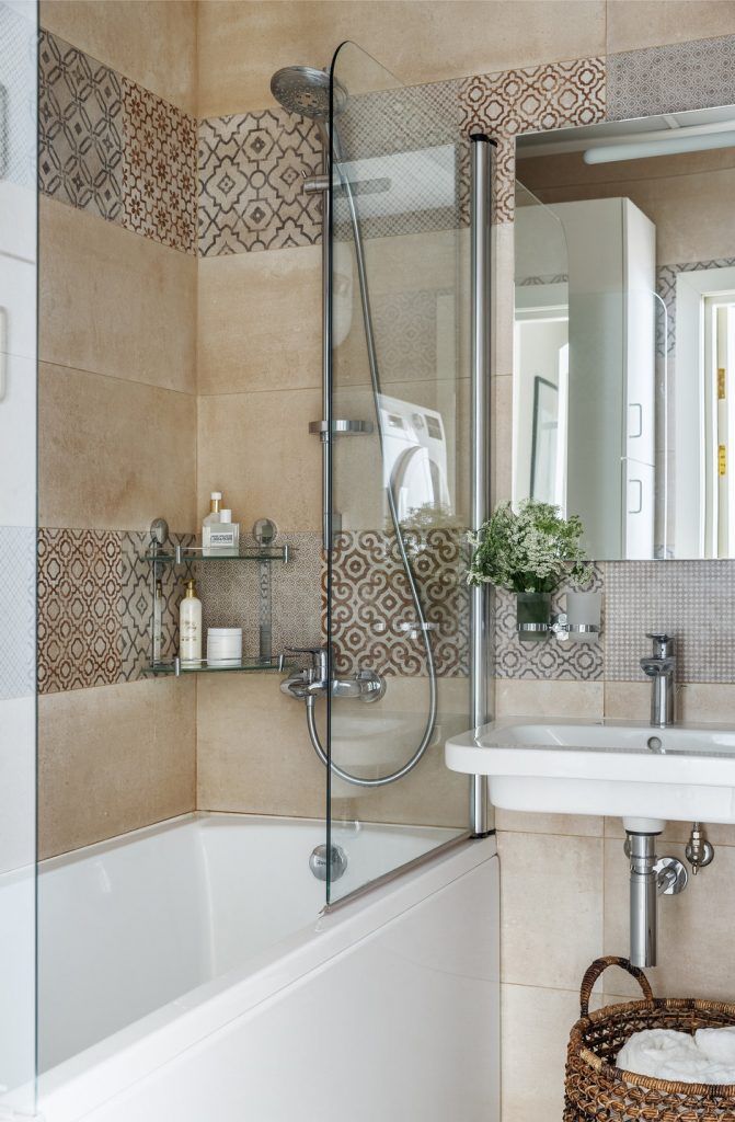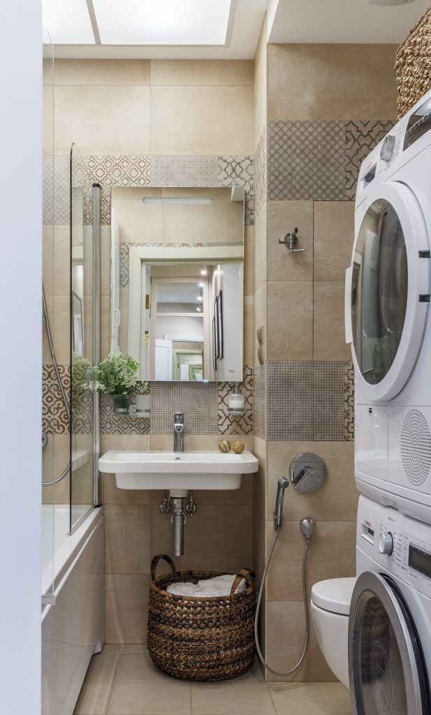 In baie, totul a fost excelent amenajat si s-a reusit incadrarea tuturor obiectelor necesare – cada, lavoar, toaleta, ba chiar si masina de spalat cu un uscator de rufe automat. Totul este adaptat dimensiunilor existente, iar placile ceramice in acelasi spirit cromatic cu ceea ce regasim in restul locuintei. Braurile de placi decorative imprima dinamica incaperii.