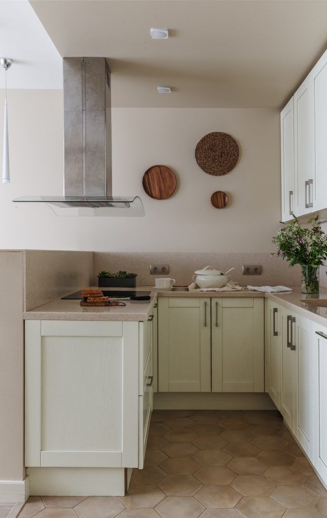 In cazul bucatariei, a fost creata o nisa in spatiul holului, ceea ce a permis integrarea mobilierului intr-o maniera compacta.