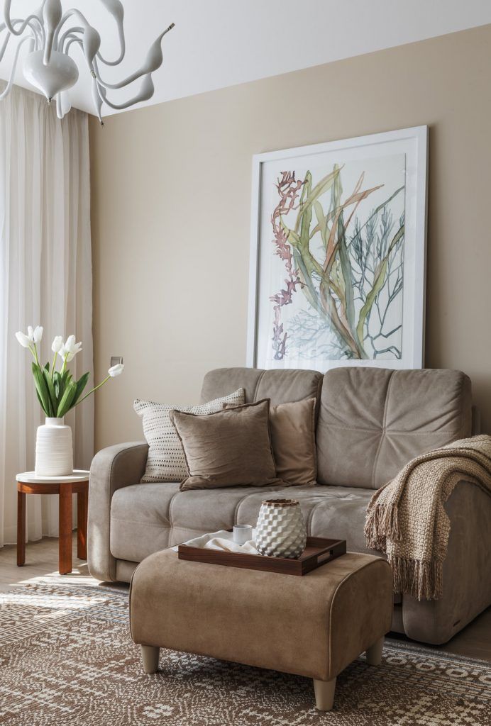 Pe fundal predomina bejul la care se adauga mici contraste de maro-brun, tuse de verde sau turcoaz-bleu, esente naturale de lemn care imprima caldura spatiului. De remarcat texturile si textilele deopotriva care imbraca decorul.