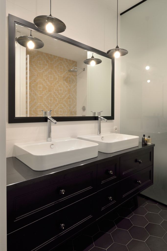 Pentru a asigura o utilizare optima, designerii au mizat pe o amenajare compacta, liniara, cu toate electrocasnicele incorporate. Dispunerea pe doua niveluri ale dulapurilor superioare asigura un plus de depozitare. Practic, spatiul a fost folosit pe verticala, maximizand perimetrul disponibil. Contrastul intre alb si gri inchis creeaza un plus de interes; la acest detaliu se adauga si portiunea de pardoseala placata cu placi decorative tridimensionale.