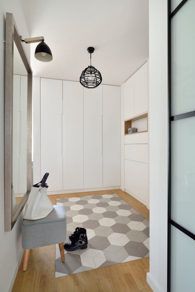 Un alt detaliu important a fost crearea de spatii de depozitare eficiente. Astfel, pe langa dulapurile din dormitoare, a fost conturata o zona de dressing in perimetrul holului si inca un dulap chiar langa usa de la intrare.