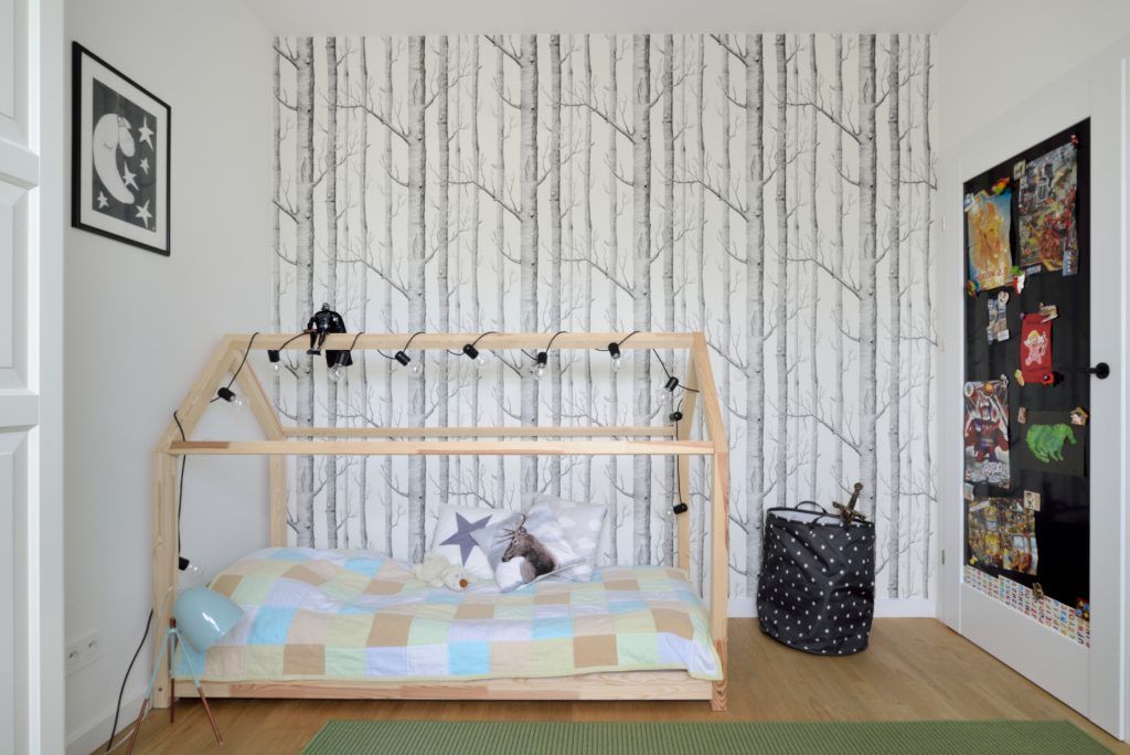 Dormitorul matrimonial este destul de minimal redat, tinand cont de faptul ca inainte de reconversie, aici, se afla bucataria. Si pentru celelalte doua dormitoare s-a urmarit aceeasi linie minimalista, cu modele de tapet care contureaza zone de accent si piese cu design jucaus potrivite pentru camere de copii.