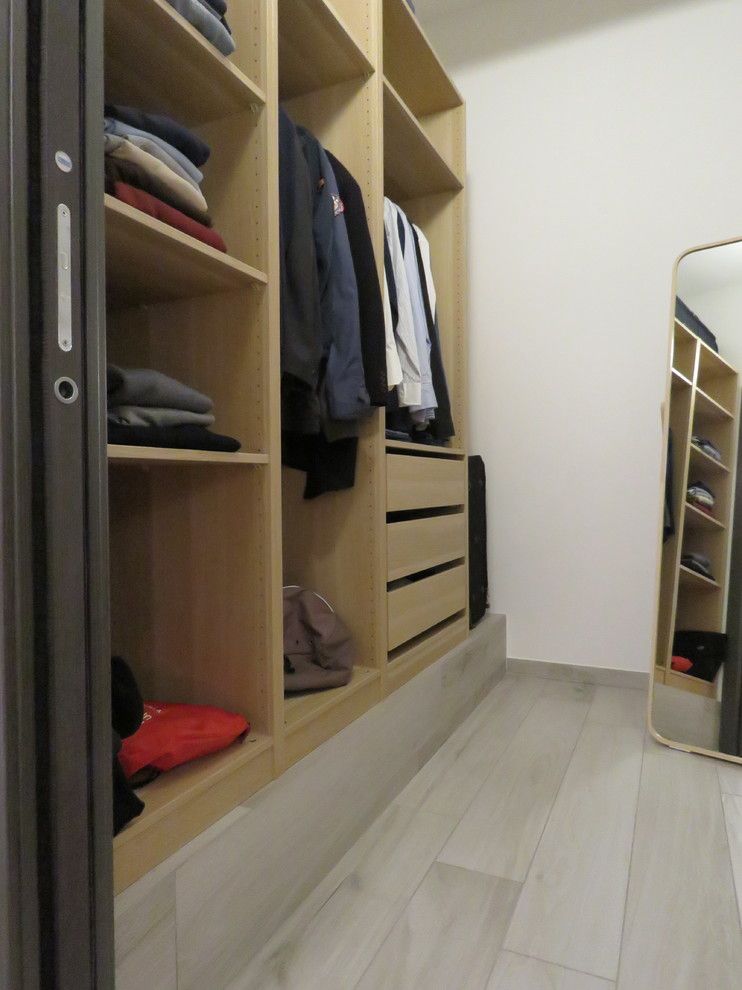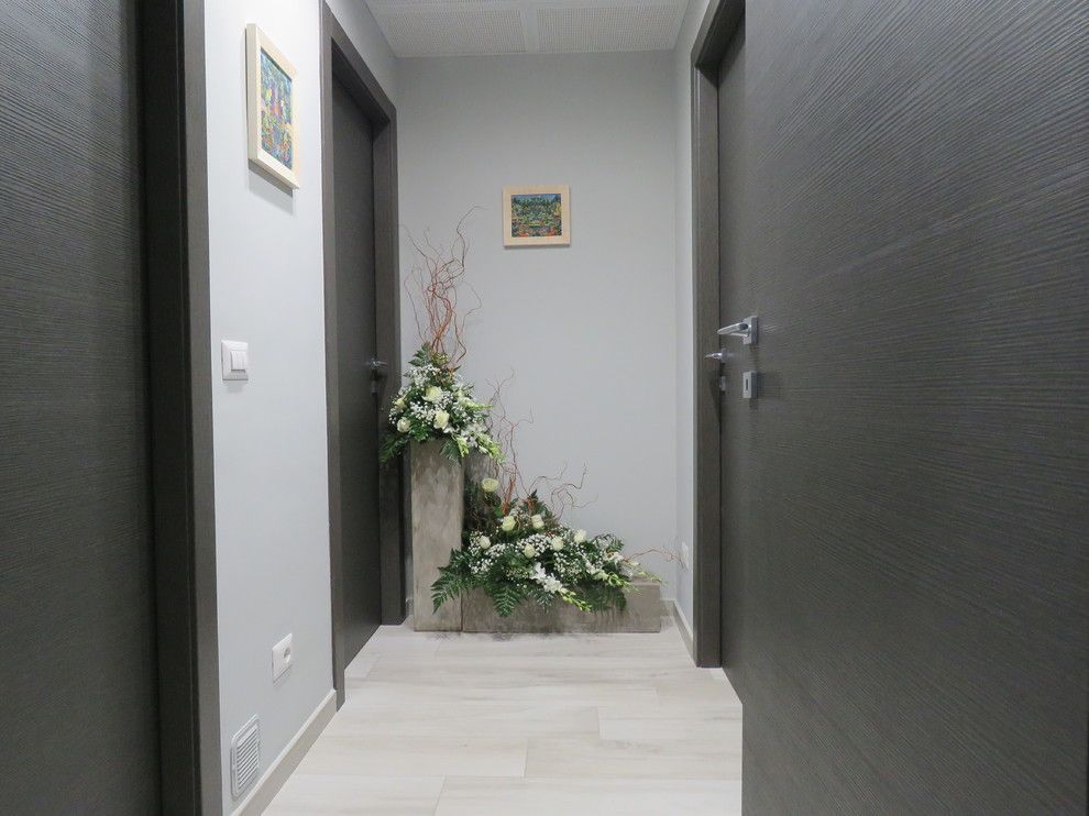 Una din modificarile cele mai importante este cea la nivelul iluminatului artificial. Intreg spatiul primeste o lumina uniforma gratie spoturilor incastrate in tavanul fals. Astfel, culorile in tonuri inchise nu afecteaza perceptia asupra spatiului.