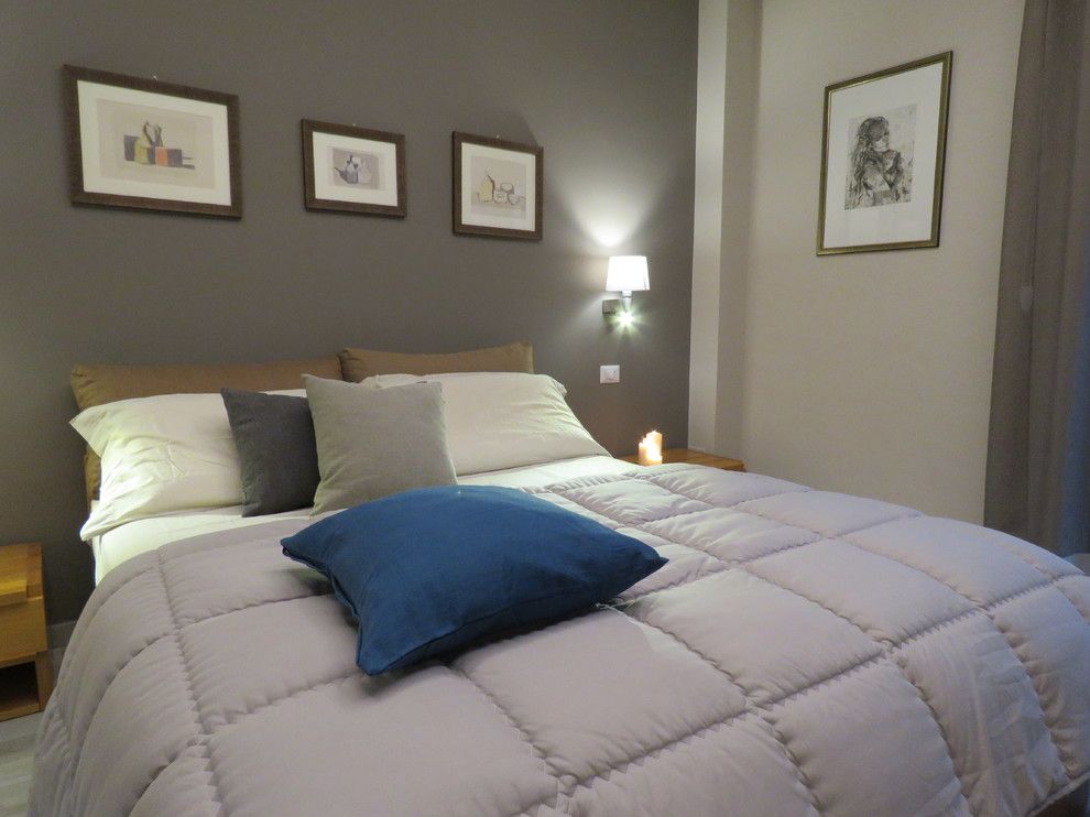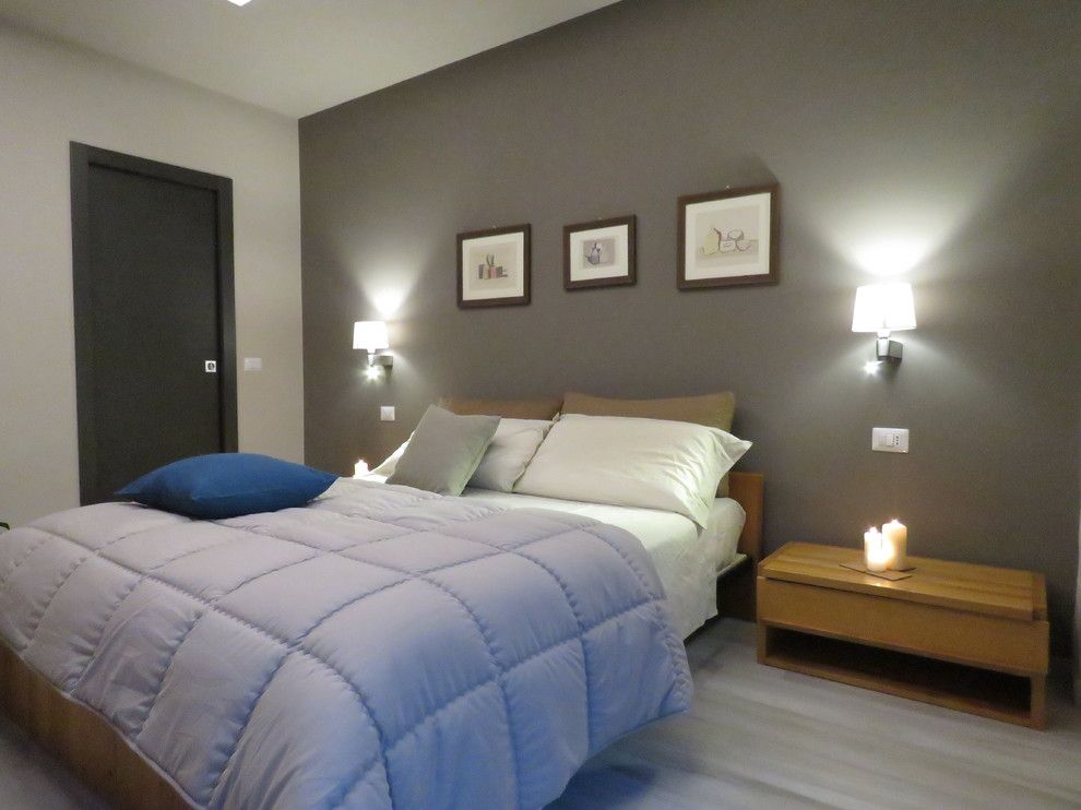 Spatiul de dormit este unul amenajat in acelasi spirit minimal, cu accent pe confort. Peretele-accent si lampile conduc spre o atmosfera placuta, relaxanta. O fosta debara din apartament a fost amenajata acum ca dressing, cu spatiu atat pentru haine, cat si pentru incaltari.