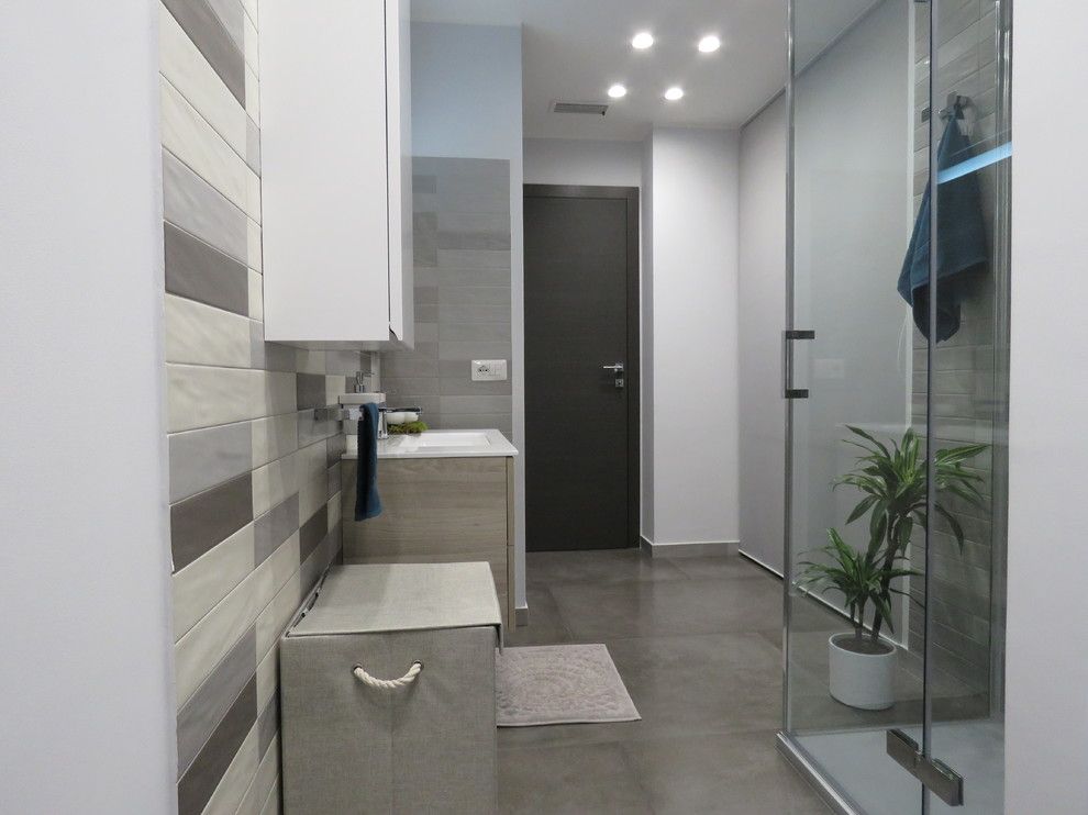 Dar, poate, cea mai mare transformare a fost realizata in baie, o incapere mai spatioasa decat suntem obisnuiti, care asigura loc pentru toaleta si bideu, o cabina de dus si lavoar. Tot aici a fost integrata si masina de spalat rufe.