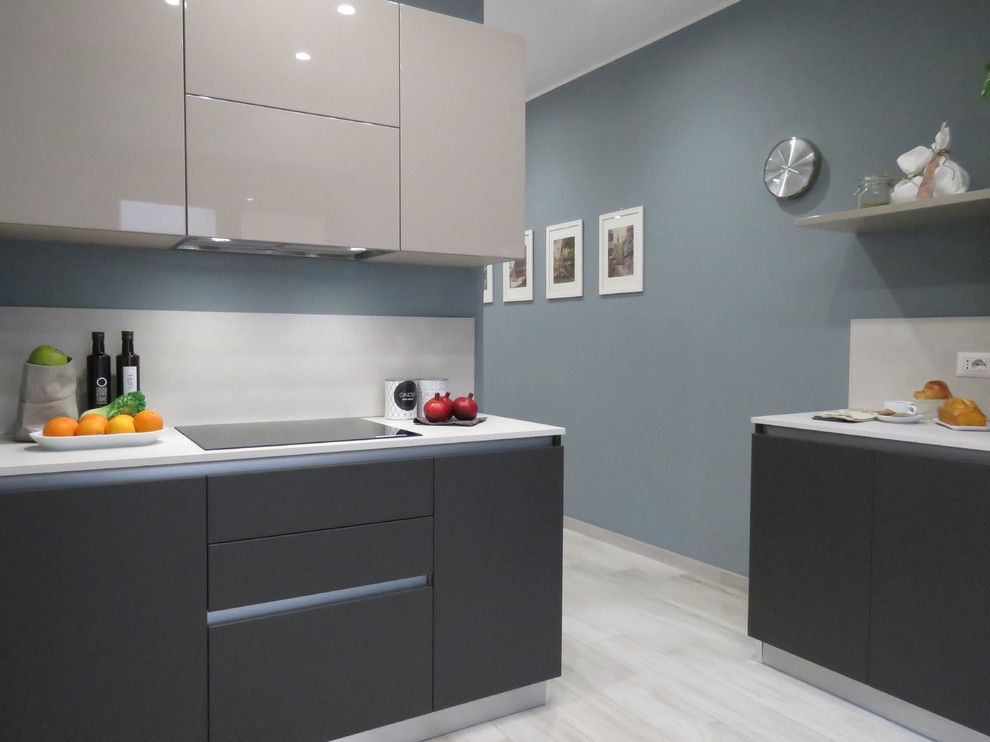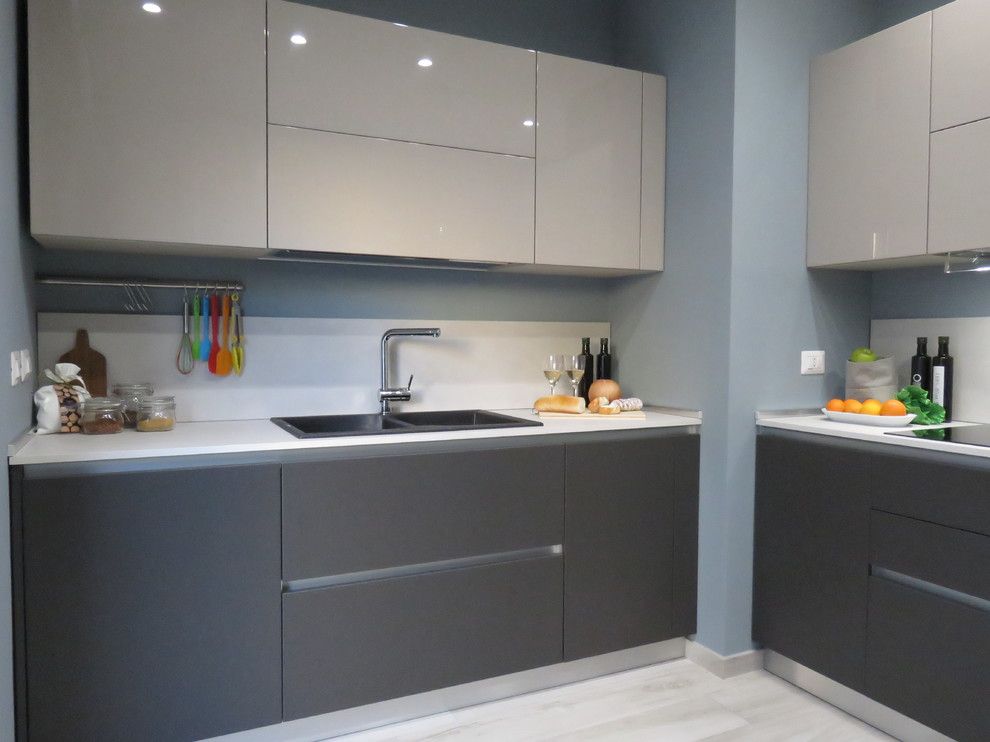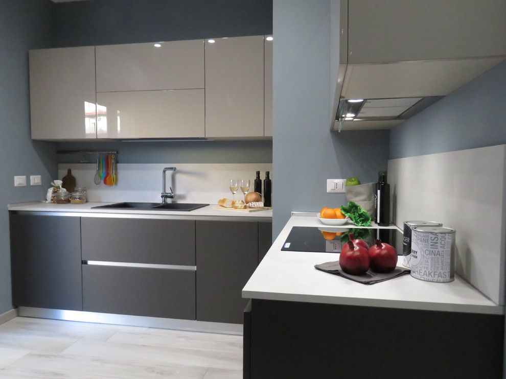 Pentru bucatarie, designerul a mizat pe o dispunere a celor trei zone de lucru pe trei laturi diferite, fiecare cu spatiile de depozitare aferente. Astfel, pe o latura vom gasi chiuveta si picuratorul aferent deasupra, pe latura din apropiere, plita si sertarele cu dulapurile unde sunt depozitate tigai, oale si ustensilele necesare gatitului, iar pe partea opusa, zona cu frigiderul si cuptoarele, toate incorporate in corpuri de mobilier. In tot acest spatiu, predomina albul si griul, dulapurile avand fronturi lucioase pentru a reflecta lumina.