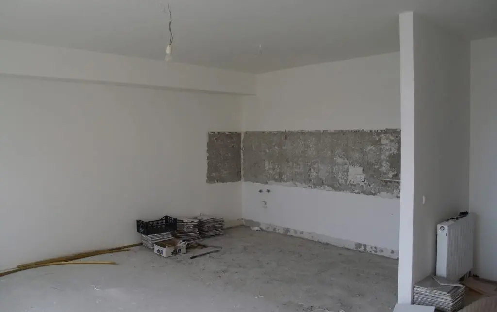 Initial, pentru a mai castiga in dimensiune, au renuntat la un perete despartitor. Asta i-a ajutat sa aseze o bucatarie estetica si utila pe un singur perete.