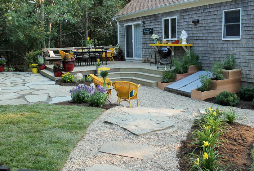 In amenajarea curtii foarte importante sunt cromatica, texturile si in general toate materialele folosite.