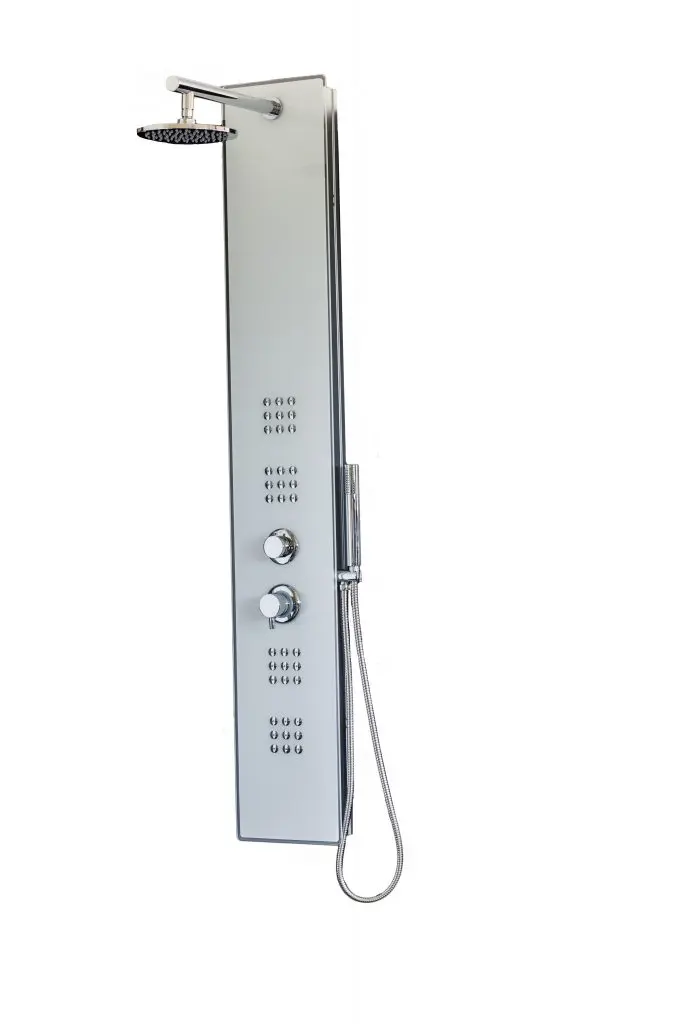 Panel alb de dus cu hidromasaj Loira, 3 functii: dus de mana, dus superior si hidromasaj.
