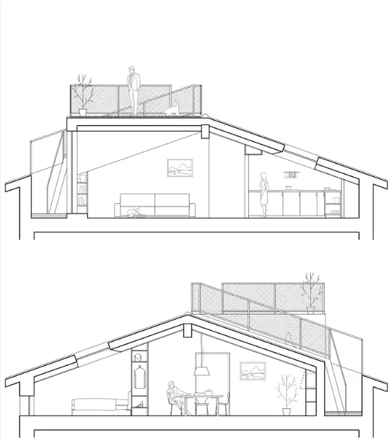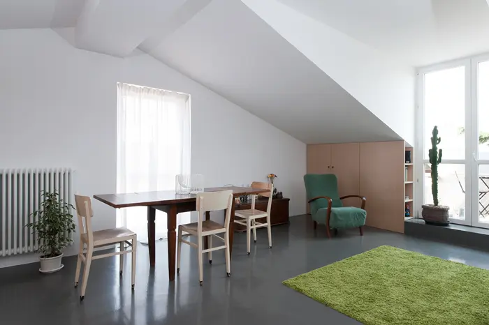 Pe langa asta, amenajarea unei mici terase deasupra mansardei a fost de asemenea o povocare pe care cei de la biroul de arhitectura Studio W OK Milano au trebuit sa o indeplineasca.