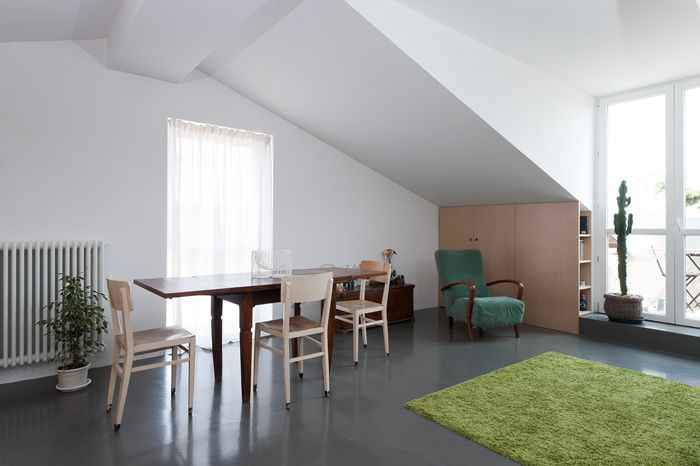 Principalele cerinte ale tinerilor proprietai ai aceste mansarde a fost crearea unui spatiu dinamic care sa cuprinda un dormitor, o baie si o bucatarie, precum si a unor multiple spatii de depozitare. Pe langa asta, amenajarea unei mici terase deasupra mansardei a fost de asemenea o povocare pe care cei de la biroul de arhitectura Studio W OK Milano au trebuit sa o indeplineasca. De curand am mai descris o alta amenajarerealizata de Studio W OK, ne-a placut asa ca am decis sa alegem inca un proiect al acestora si sa vi-l prezentam.