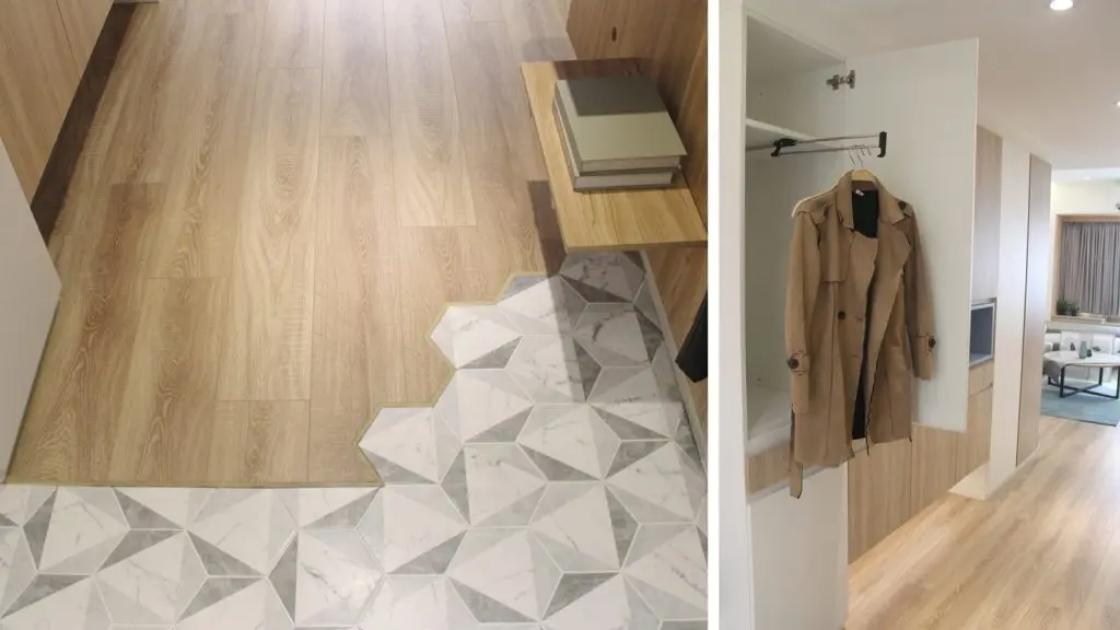 Marele castig in acest proiect a fost inlocuirea gresiei cu parchet. Totul pare acum mai primitor, mai calduros. La aceasta senzatie contribuie din plin si iluminatul artificial, uniform dispus de-a lungul functiunilor. Astfel, spoturile incastrate, benzile L ED si corpurile suspendate asigura o cantitate optima de lumina pentru confortul beneficiarilor.