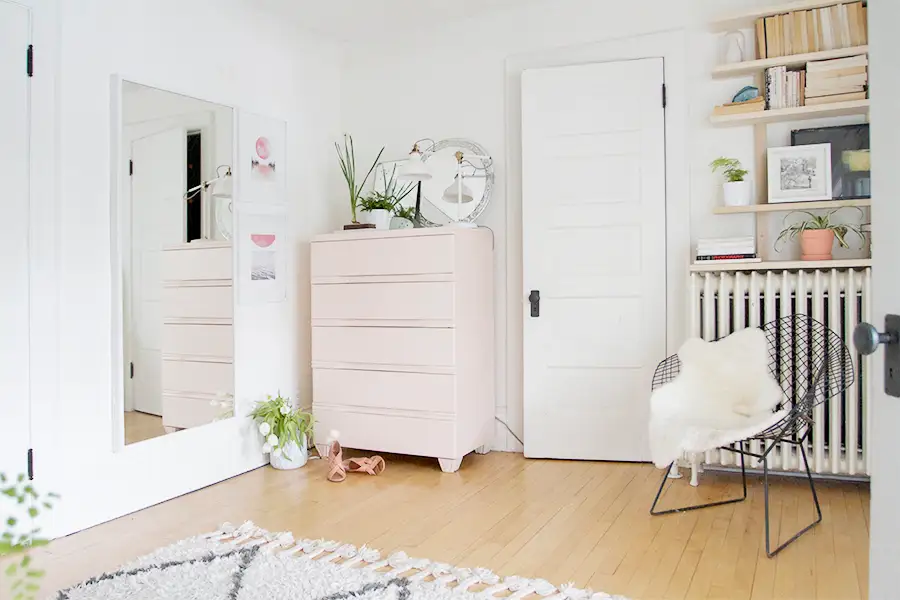 Comoda de un roz pastelat este o aditie placuta in spatiul creat.