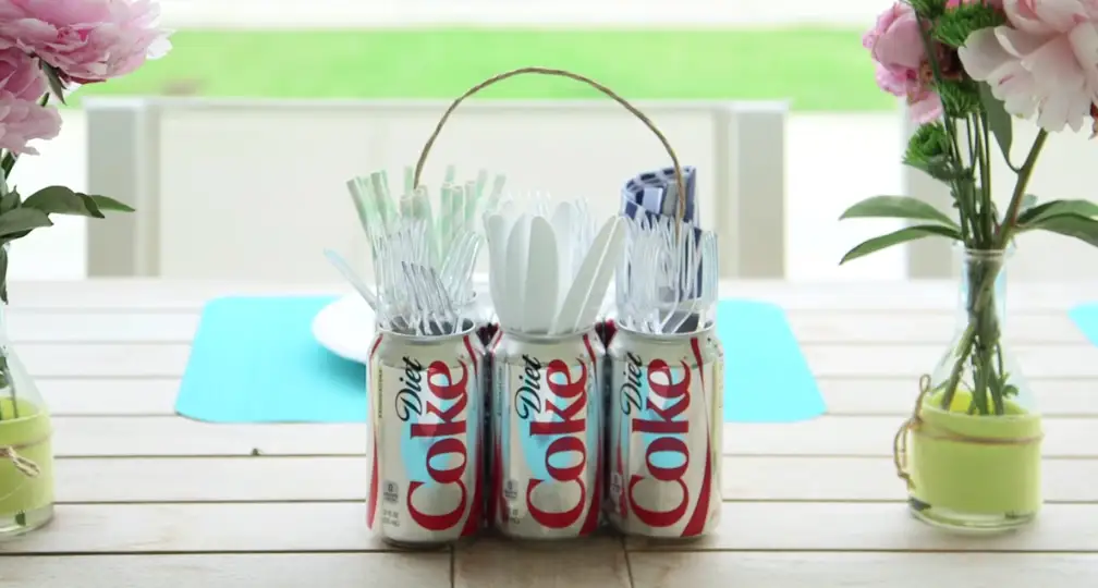 Suport pentru tacamurile de bucatarie din doze de aluminiu.