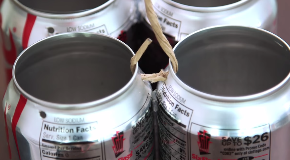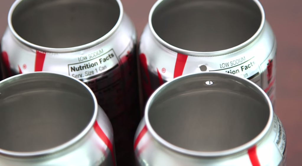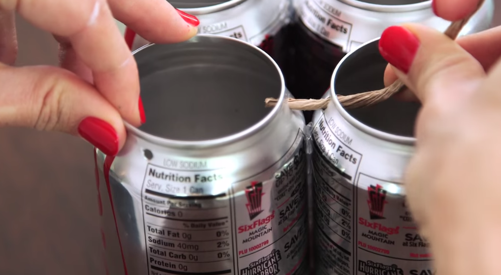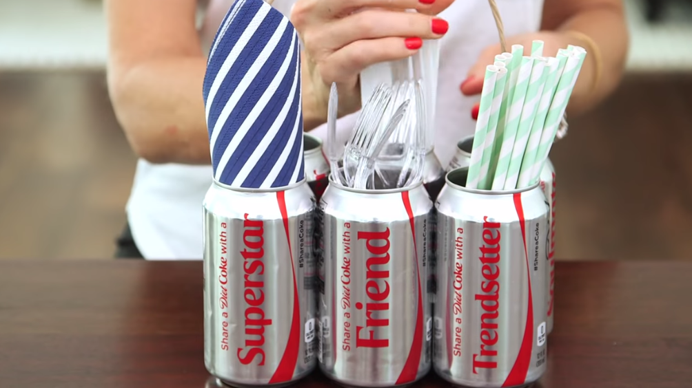 Suport pentru tacamurile de bucatarie din doze de aluminiu.